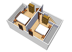 The cottage building is a two bedroom, 1 1/2 storey Cape Code style cottage. The new roof height has afforded more headroom upstairs, with both bedroom windows and a large living room window that offer a sunset water view. The cottage has a queen sized bed, double/full sized bed, and a fold down couch for a total sleeping accommodation of 6.